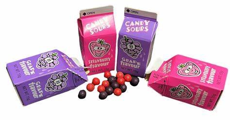 The name says it all. These little sour candies in a cute mini milk container are a perfect little sweet treat. They come in 2 different flavours, Strawberry or Grape. Kids love these and they make great party favours. Pick your favourite flavour or we will decide for you based on your order. 15g